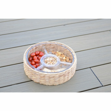 Witte en gouden cakeschotel op voet 30x30x12,5 cm