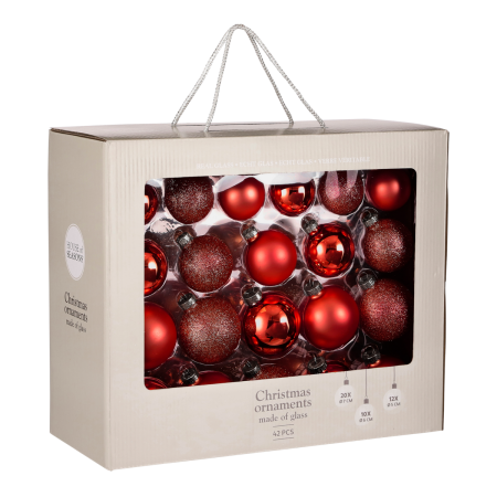 Kerstballen Set – 42 Stuks – Ø7 cm – Glas – Rood