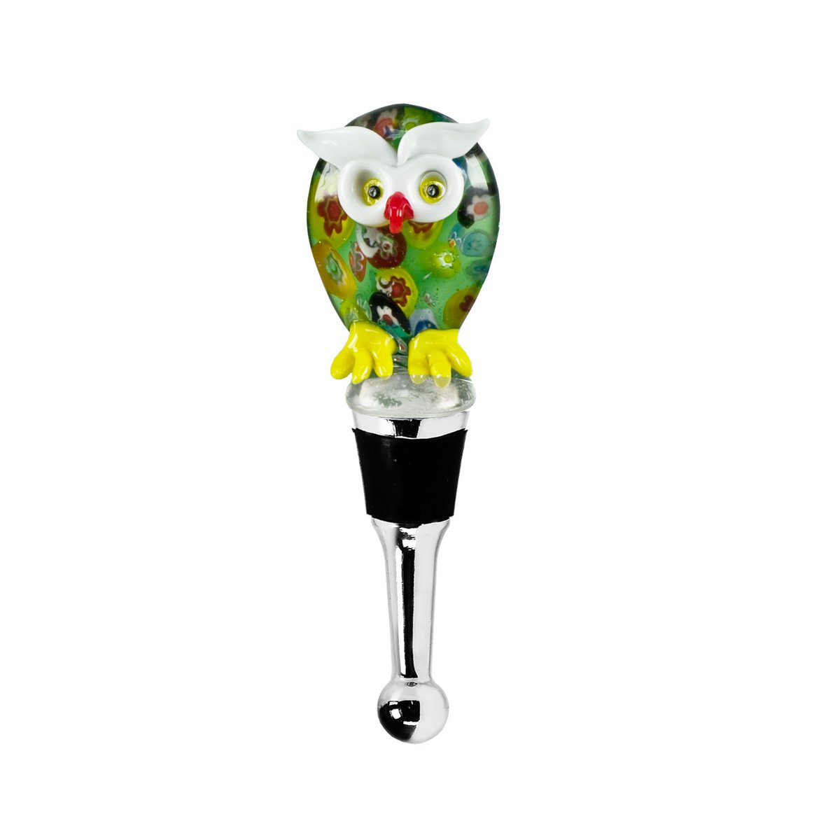 EDZARD flessenstop uil voor champagne, wijn en schuimwijn, hoogte 11 cm, type Murano-glas, handgemaakt