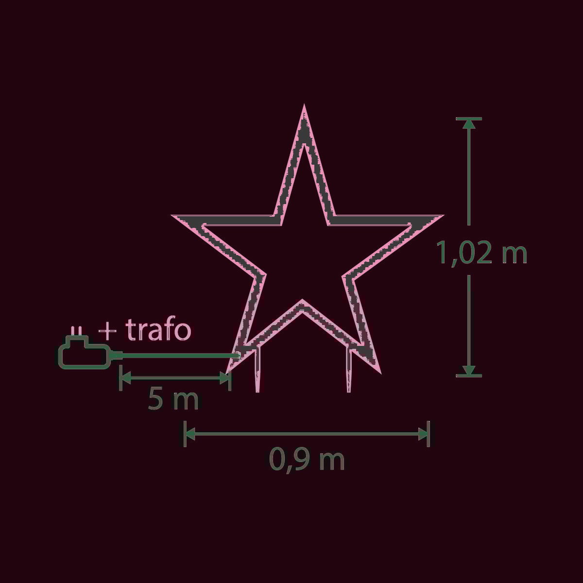 De stervormige tuinsteker van Luca Lighting is een echte sfeermaker tijdens de mooiste, maar ook donkerste dagen van het jaar. De tuinsteker met verlichting is onderdeel van de Garden d’Light collectie: een serie van koppelbare kerstverlichting met LED lampjes. Ideaal om jouw hele tuin een make-over te geven! Deze ster straalt warm wit licht uit. Het frame is gemaakt van zwart metaal, waardoor je in het donker alleen nog maar de lampjes ziet. Je kan de tuinsteker door middel van de twee pinnen in de grond steken. Verder kan je met de meegeleverde adapter een timer aanzetten en jouw favoriete stand kiezen uit 8 verschillende opties. Wat een opties! De tuinsteker in de vorm van een ster heeft een afmeting van L90 x H102 cm. Het aansluitsnoer heeft een lengte van maar liefst 5 meter.