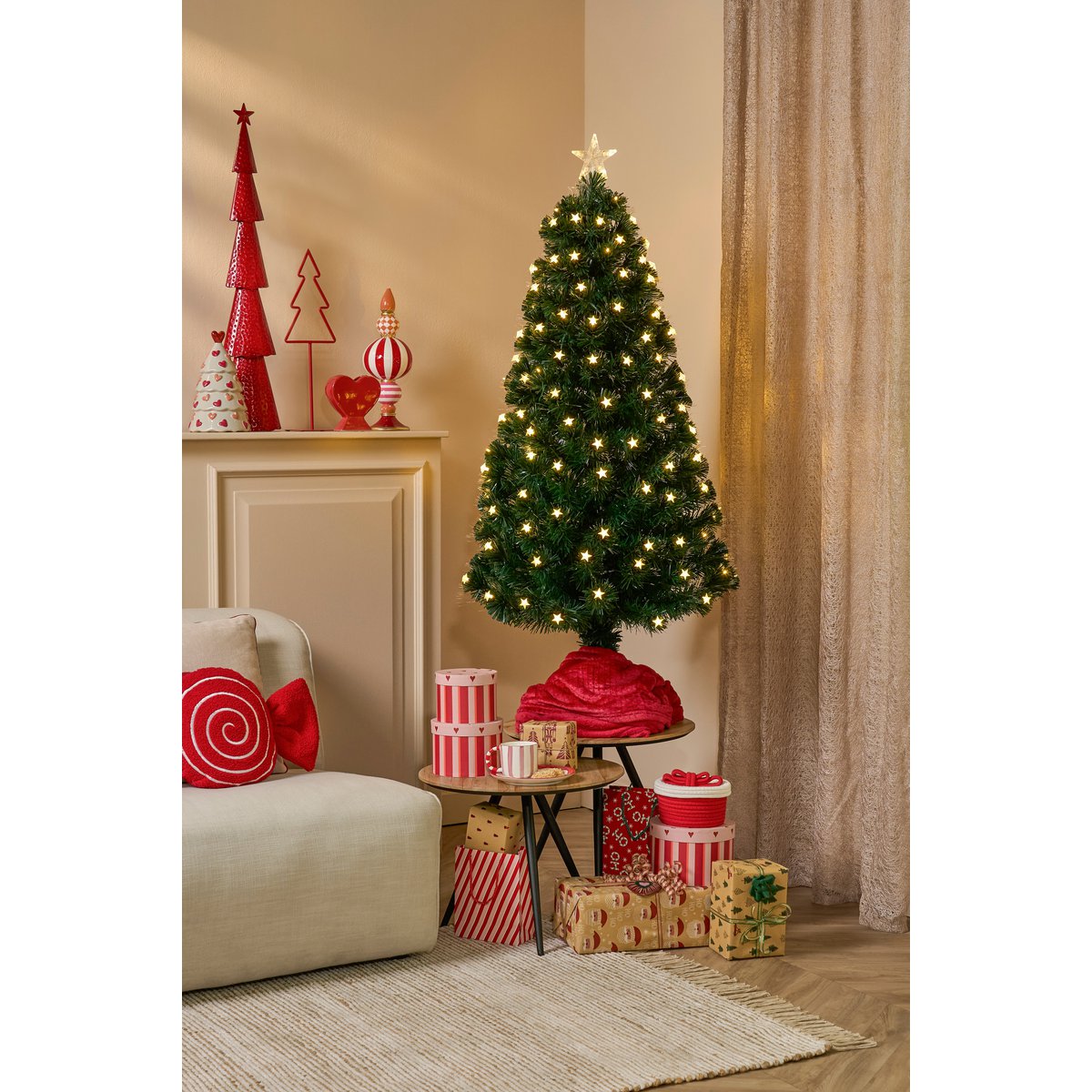 Met de Mercury kunstkerstboom uit de collectie van Luca Lighting maak je het thuis pas echt feestelijk gezellig. Het de kerstboom is namelijk voorzien van warm witte verlichting in de vorm van kleine sterretjes. Het bijzondere is dat door de optische vezels (fibre optic) ook de topjes van de naalden meebranden, wat een effect! Op het boompje is ook een stervormige piek bevestigd die ook mooi brand. De kunstboom telt in totaal 185 LED lampjes en wordt geleverd inclusief adapter met een snoer van 1,8 meter. Je kan kiezen uit 8 verschillende functies. Ga jij voor de feestelijke knipperfunctie of hou je de lampjes het liefst zo lang mogelijk aan? De afmetingen van de kerstboom zijn H150 x Ø65 cm. Waar zet jij hem neer?