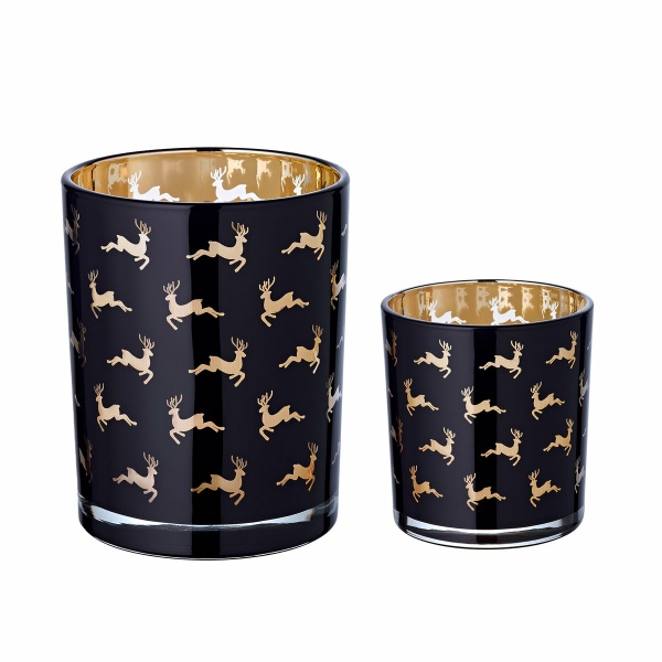✓ UW VOORDELEN: 2x lantaarn Luna| Hoogte 8 cm en 13 cm | Ø 7 cm en 10 cm | voor theelichtjes | combineerbaar | Herten blik